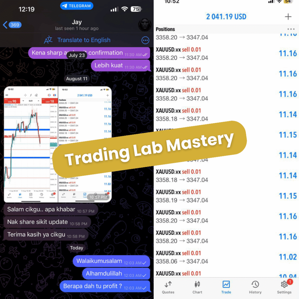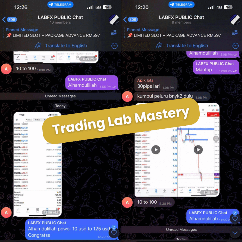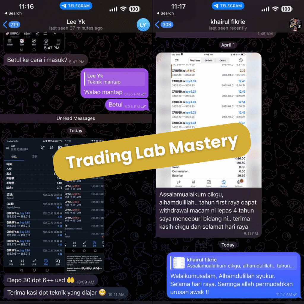 Dengan Trading Lab Mastery, anda ada roadmap jelas dari entry hingga profit yang konsisten.