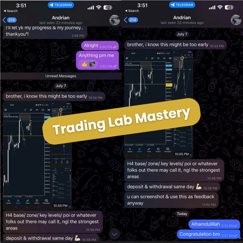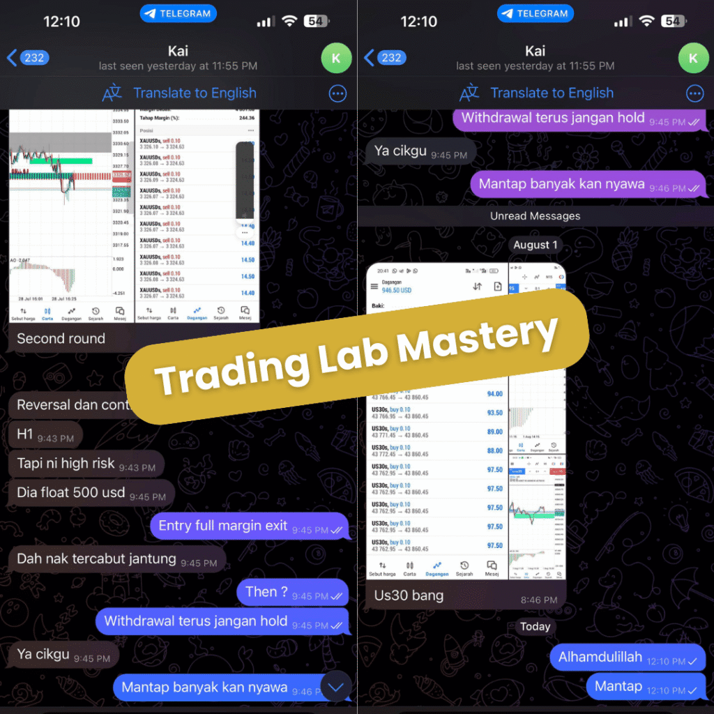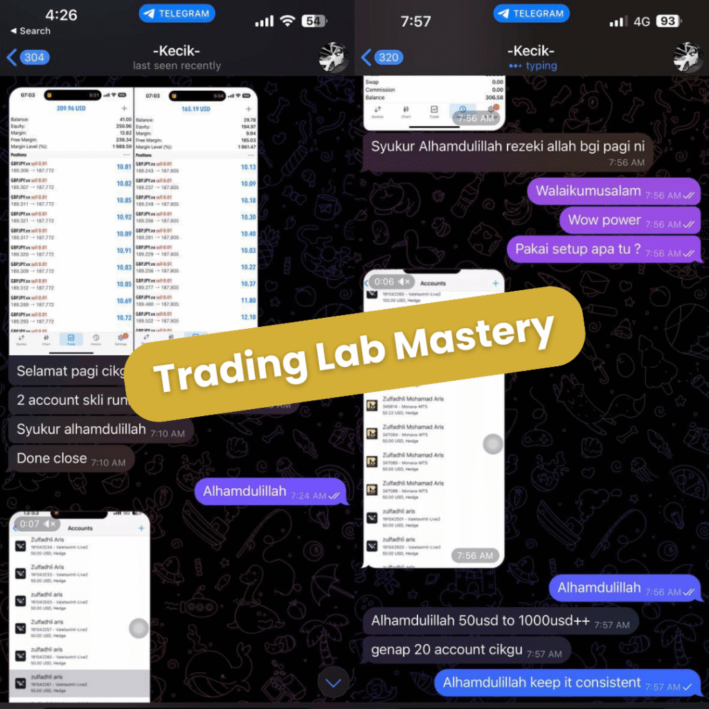 Dengan Trading Lab Mastery, anda ada roadmap jelas dari entry hingga profit yang konsisten.